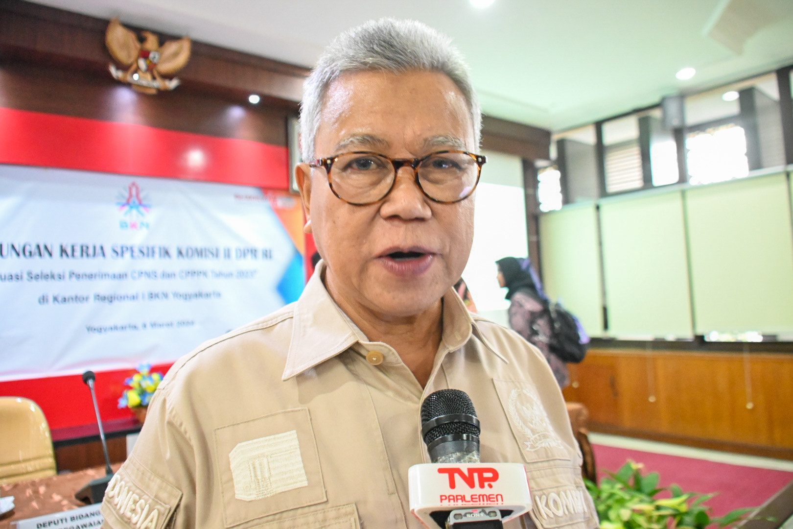 Wakil Ketua Komisi II DPR RI Syamsurizal saat diwawancarai Parlementaria di Yogyakarta, Rabu (6/4/2024). Foto: Ridwan/nr.