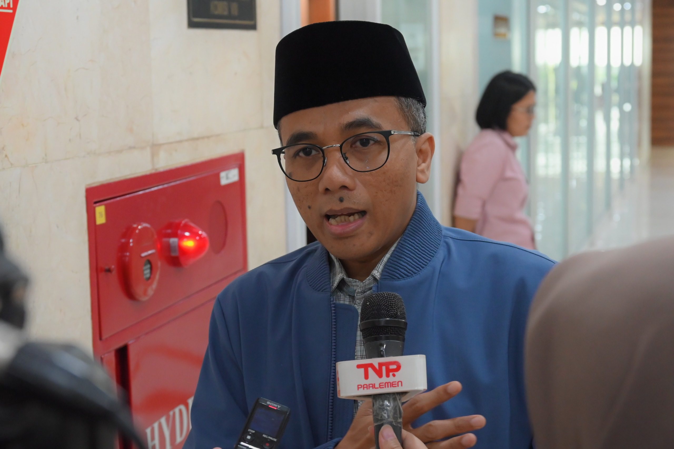Anggota Komisi I DPR RI Muhammad Arwani Thomafi saat diwawancara usai Rapat Kerja Komisi I dengaan BSSN, di Gedung Nusantara II, DPR RI, Jakarta, Senin (2/9/2024). Foto: Mentari/vel.