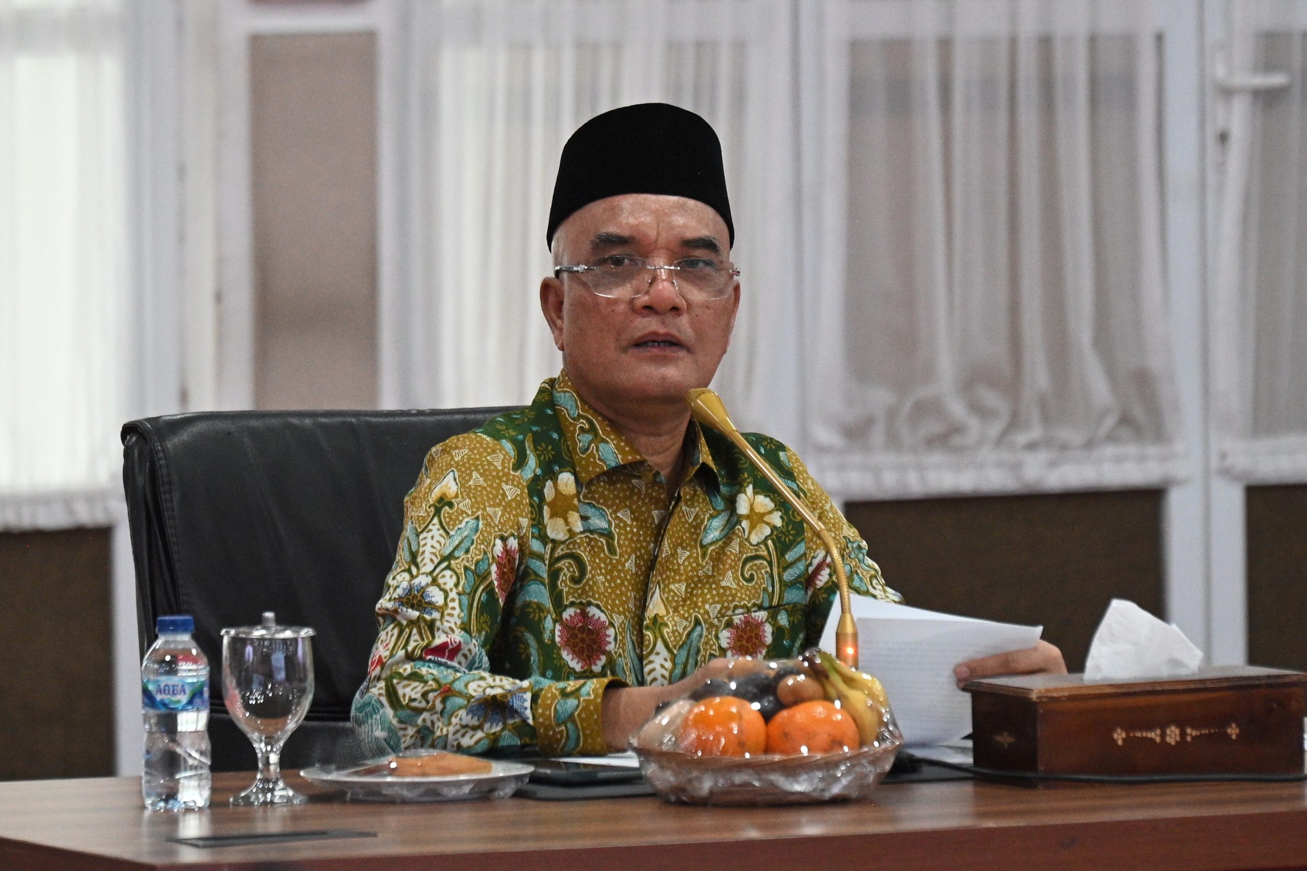 Ketua Komisi VIII DPR RI, Marwan Dasopang, saat memimpin pertemuan dengan Pj Gubernur Sumatera Utara, Badan Penanggulangan Bencana Daerah (BPBD) Provinsi Sumatera Utara, dan Kementerian Sosial, di Medan. Foto: Farhan/vel.