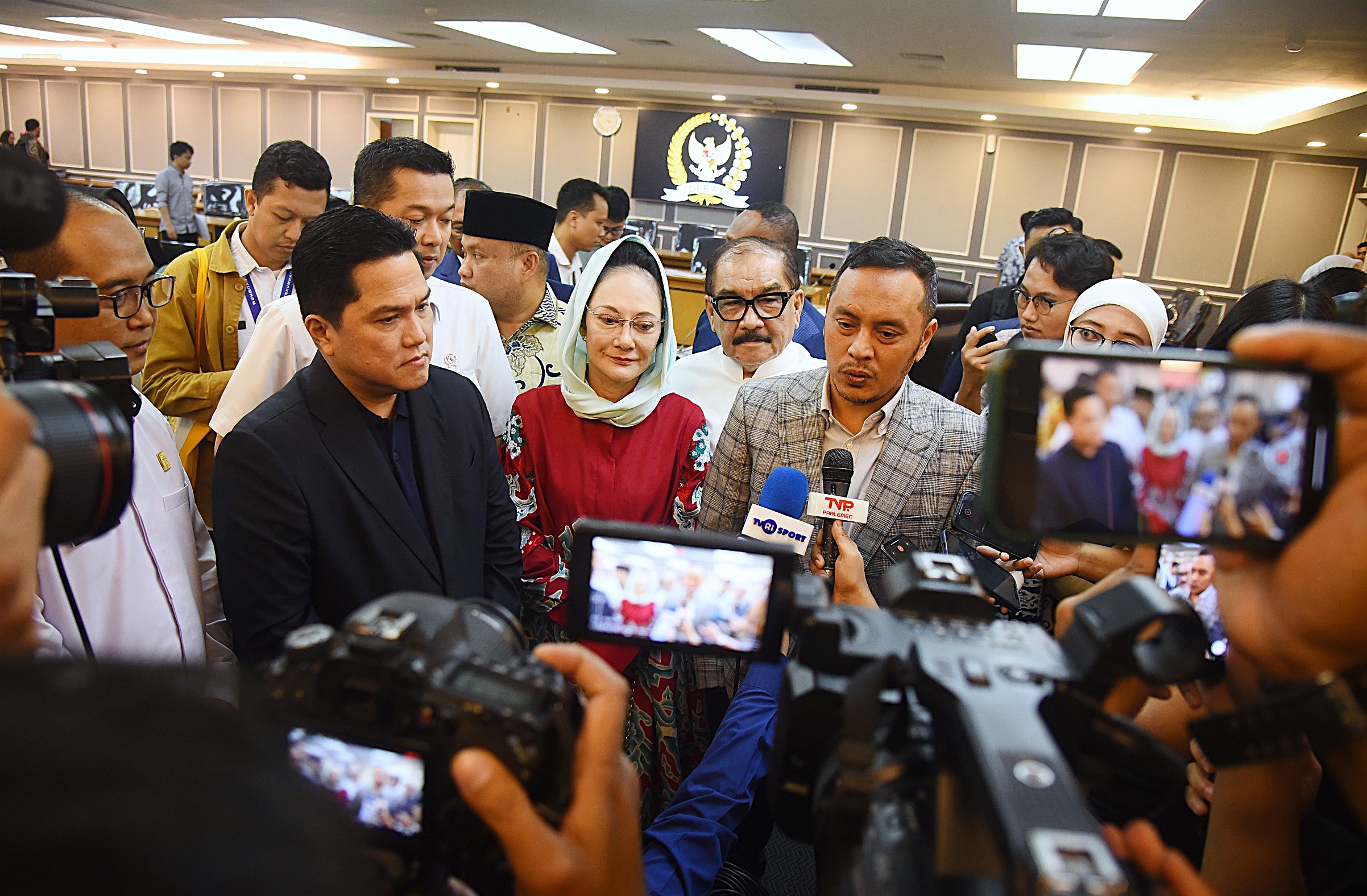 Rapat ini melibatkan Wamenpora Taufik Hidayat, Ketua Umum PSSI Erick Thohir, Wakil Ketua Umum PSSI Zainudin Amali, serta Dirjen Administrasi Hukum Umum Kemenkumham RI Widodo, di Ruang Rapat Kerja Komisi XIII, Gedung Nusantara II, DPR RI, Rabu (5/3/2025).