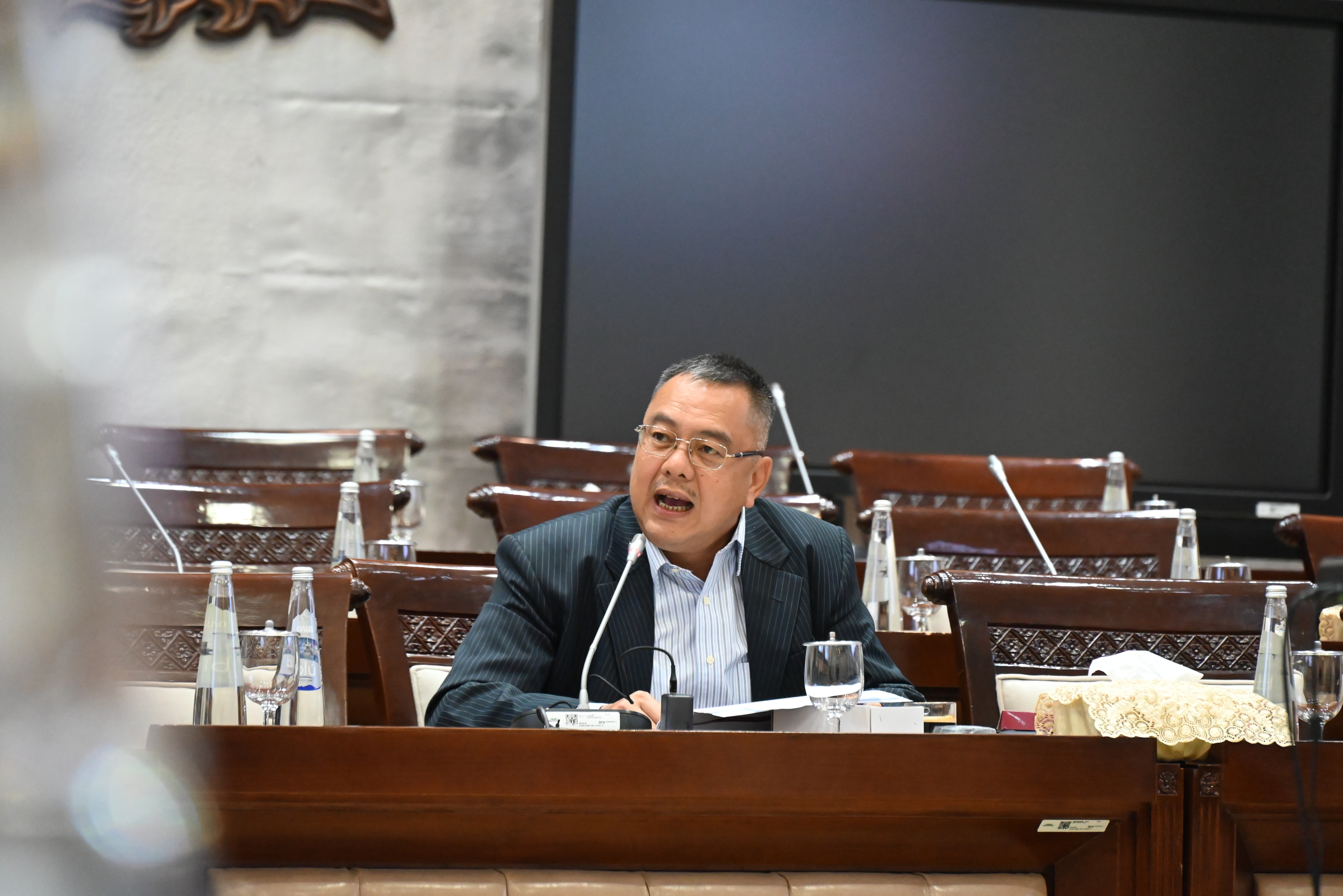Anggota Komisi XI DPR RI Harris Turino saat mengikuti Rapat Panja RUU P2SK dengan ADK OJK Bidang Pengawasan Perasuransian, Penjaminan, dan Dana Pensiun di Ruang Rapat Komisi XI, Kompleks Parlemen,.