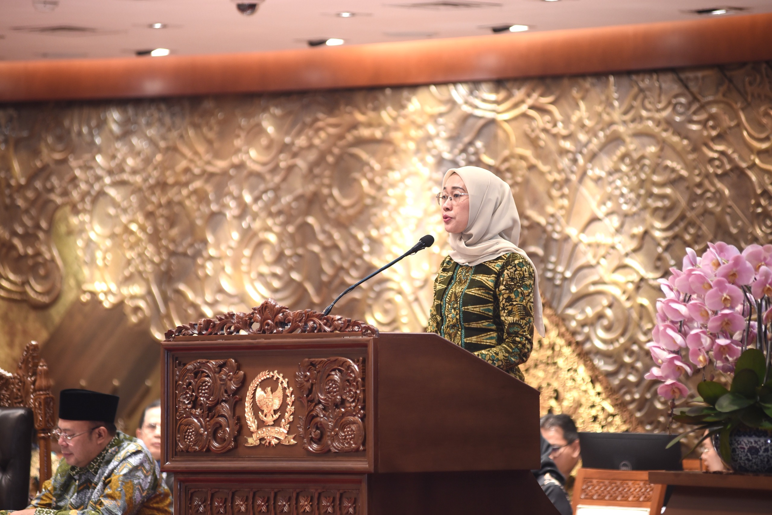 Ketua Komisi VI DPR RI Anggia Erma Rini saat membacakan pidato laporan terkait RUU BUMN dalam rapat paripurna. Foto: Geraldi/vel.