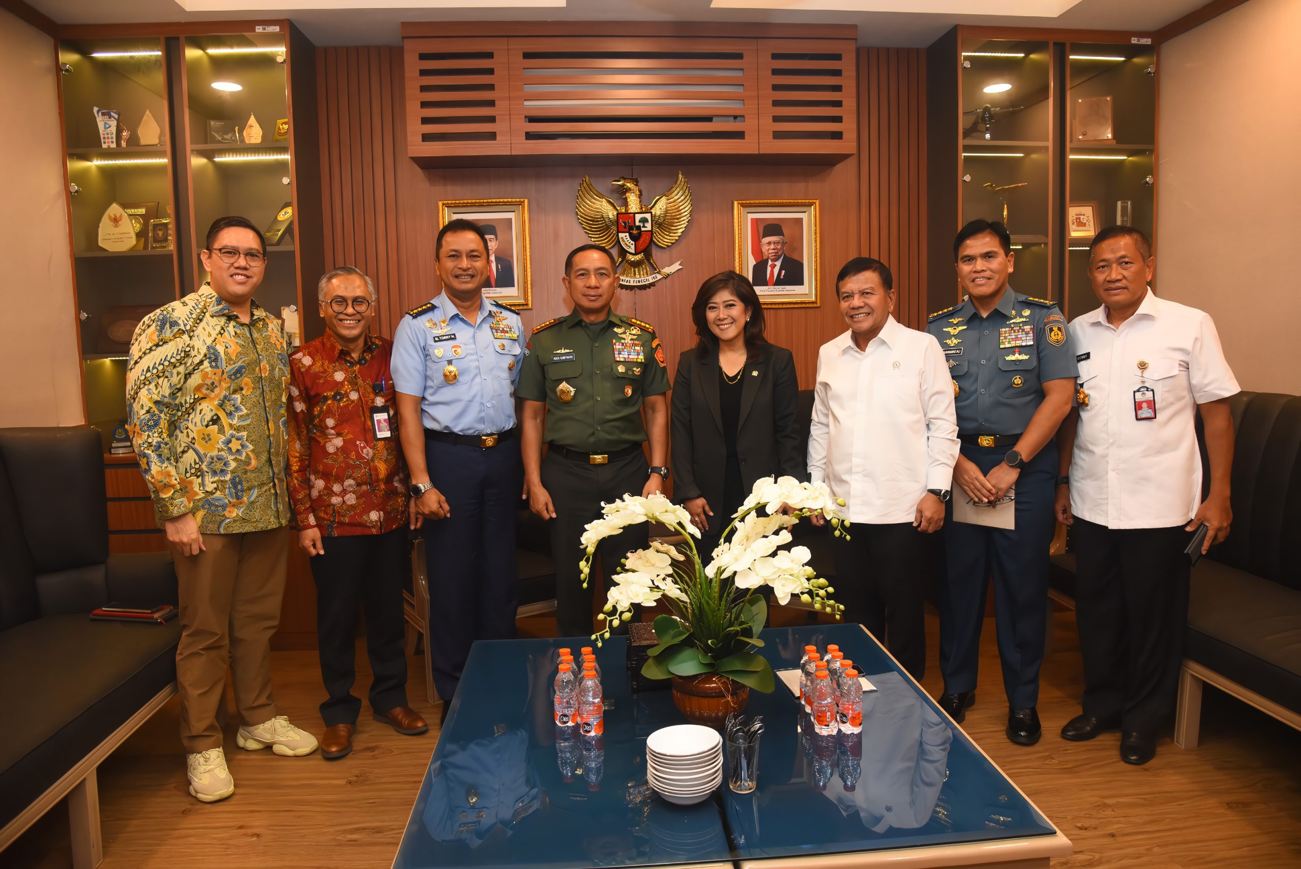 Ketua Komisi I DPR RI Meutya Hafid saat foto bersama sebelum mengikuti Rapat Kerja Komisi I dengan Menhan dan Panglima TNI di Ruang Rapat Kerja Komisi I DPR RI, Senayan,.